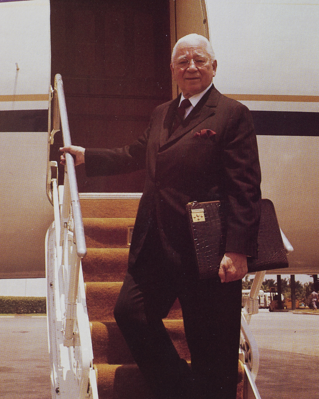 Credit: Philadelphia Church of GodMr. Armstrong climbs aboard the Grumman Gulfstream on one of his visits to world leaders.
